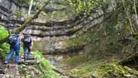 Übernachtet haben wir auf einem Pferdehof in Orvin. Die Zimmer wurden liebevoll und sehr schön ausgebaut und renoviert. Marike hat immer wieder einmal ein verstecktes Bijou für die Übernachtung gefunden. Nach einem ausführlichen Frühstück nahmen wir von Biel aus den Zug nach St. Imier, der Uhrenstadt. Von dort aus wählten wir den Weg durch den Combe Grède, einer Schluchtenwanderung. Die Wanderung zeichnete sich durch eine mystische Landschaft aus, welche durch den Regen im Voraus noch etwas verwunschener und verwilderter aussah. Diese Route ist nicht ganzjährig begehbar, weil Teile davon sehr steil sind und mit Leitern und Ketten gesichert sind, welche erst im Frühjahr wieder montiert werden.