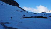 Bei der Hütte angekommen, sahen wir, dass der gesamte Wanderweg hinauf mit Schnee bedeckt ist. Da wir aber mit Steigeisen und Seil sowieso gut ausgerüstet waren, entschieden wir uns die Tour von der Hütte aus zu machen und nicht von Scex Rouge aus.